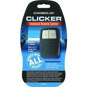 The Chamberlain KLIK1U Clicker Universal Remote Control is an easy-to-program remote control that is compatible with major brands of garage door systems. The Clicker can operate two different frequencies at the same time, so you can combine two remotes into one. Frequently used to replace lost or damaged remotes, the Clicker Universal Remote Control is a user-friendly solution that gives you secure and convenient access to your garage. If you need to replace a lost or broken remote control, or just want to complement your existing garage access system, the new Clicker universal remote control is the perfect single-source solution. It is designed to work with a variety of brands of garage door openers to give you convenient, secure, access to your garage and home. With it, you can operate two different garage door manufacturers and/or frequencies at the same time, so it's like having two remote controls in one. A single coin cell battery is included. It is compatible with Genie, Linear/Moore-o-Matic, Stanley, Overhead Door, Wayne-Dalton, Craftsman, Chamberlain, and Lift Master. Features: Works with 99.9 percent of garage door openers Features Smart Learn button Programs in seconds Program up to two openers Design uses less plastic .